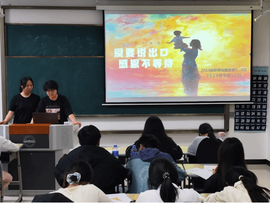 “同學(xué)們,猜一猜明天是什么節(jié)日啊?”“母親節(jié)!”5月11日,新聞傳播學(xué)類專業(yè)2023(7)、(8)班在K202教室開展以“愛(ài)要說(shuō)出口,感恩不等待”為主題的團(tuán)建活動(dòng)。活動(dòng)開始前,活動(dòng)負(fù)責(zé)人、新聞傳播學(xué)類專業(yè)2023(7)、(8)班的班長(zhǎng)楊雨霏、朱研溪提前為每位同學(xué)準(zhǔn)備好信紙和信封。朱研溪說(shuō):“我們希望通過(guò)寫信這種傳統(tǒng)而深情的溝通方式,讓同學(xué)們勇敢表達(dá)自己的心聲,將對(duì)母親的愛(ài)訴說(shuō)于筆尖。”學(xué)生們觀看一段關(guān)于母愛(ài)的感人短片后,...